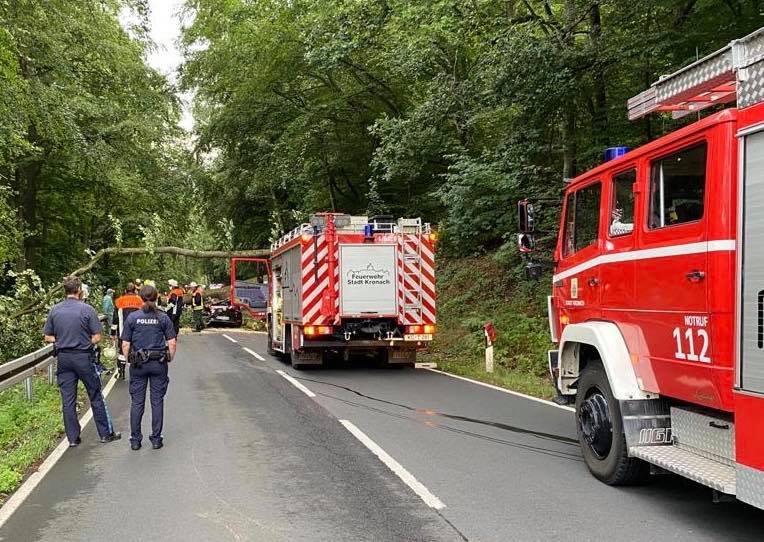 Am 17.08.2020 wurde die Feuerwehr Kronach um 18:54 Uhr zu einem auf einen fahrenden PKW gestürzten Baum nachalarmiert. Vor Ort…